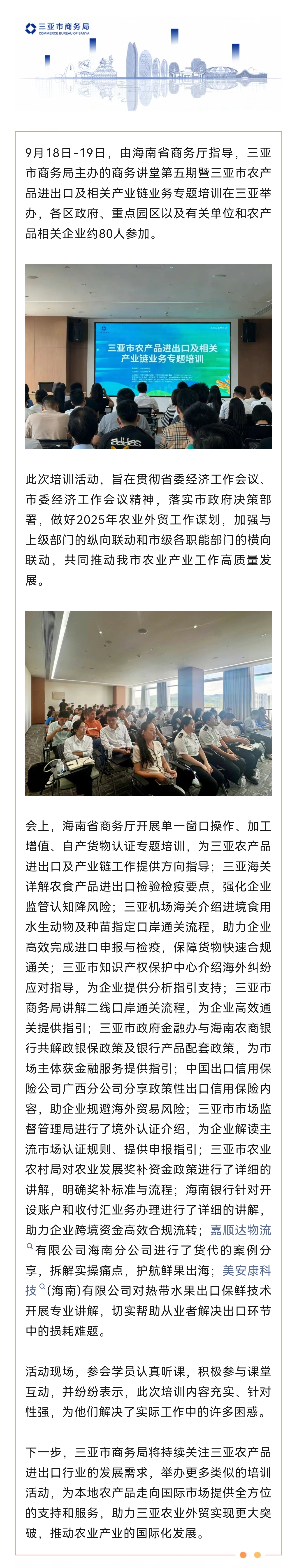 三亚市农产品进出口及相关产业链业务专题培训活动顺利举行