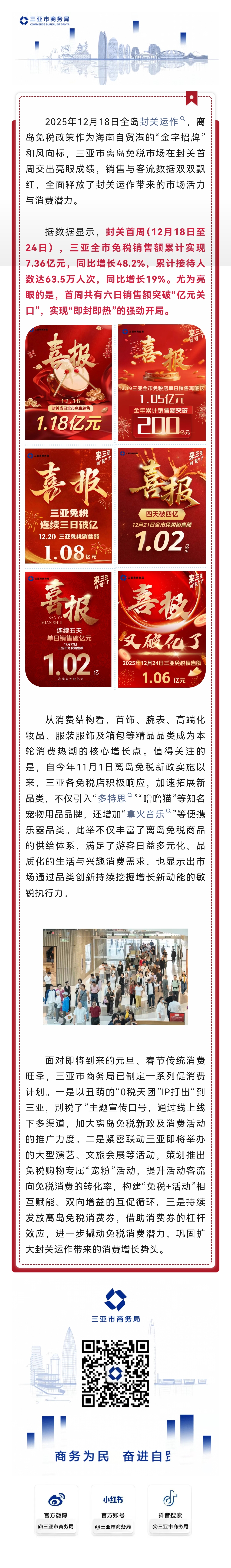 封关运作激发消费热潮 三亚离岛免税市场迎“首周红”
